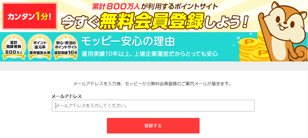 ◇モッピーでポイントを貯めるための手続きは簡単です。